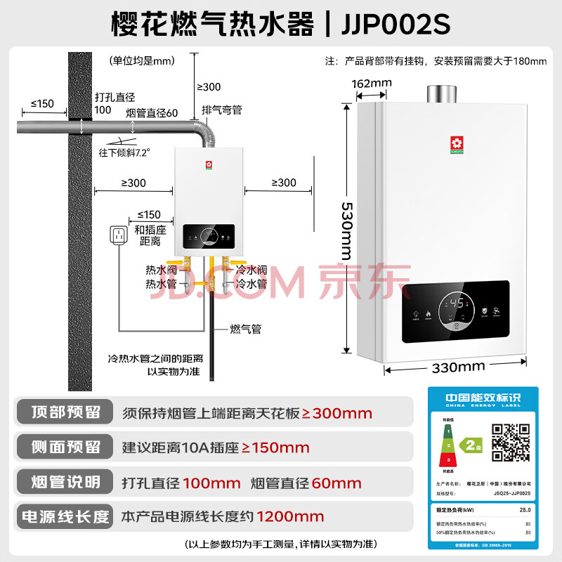 商品相册:樱花(SAKURA)燃气热水器天然气13升水气双调日本CPU智能精控恒温低压启动JSQ25-JJP002S第