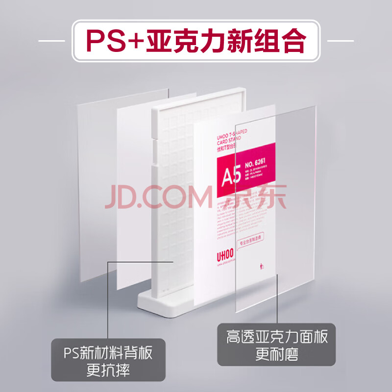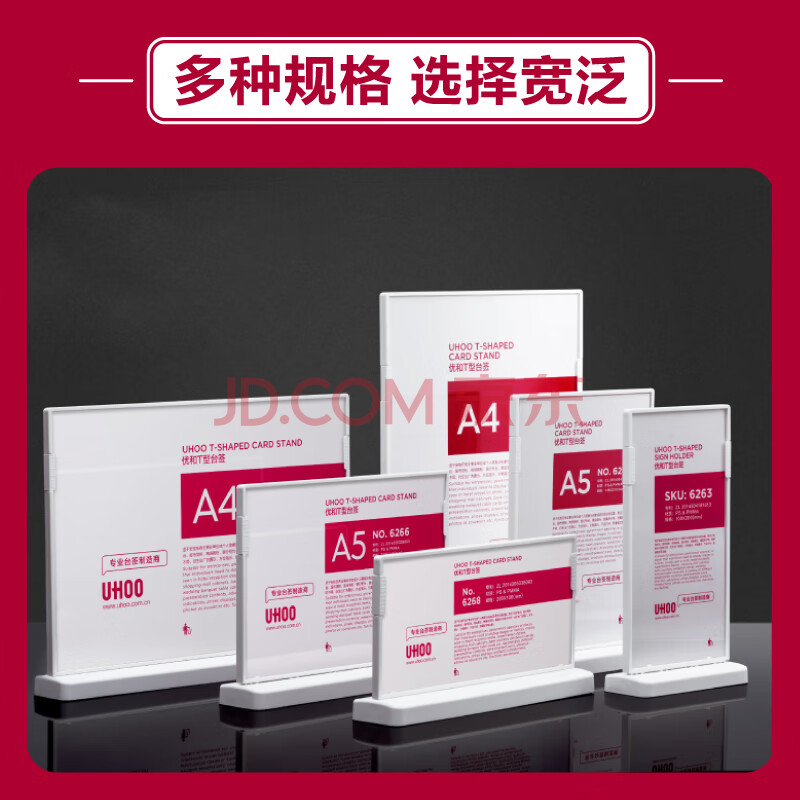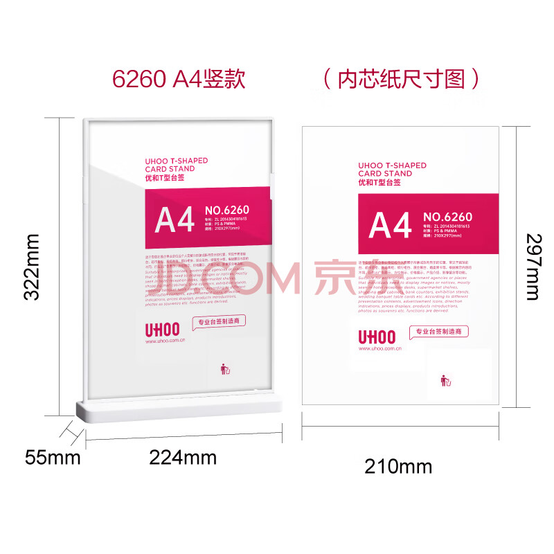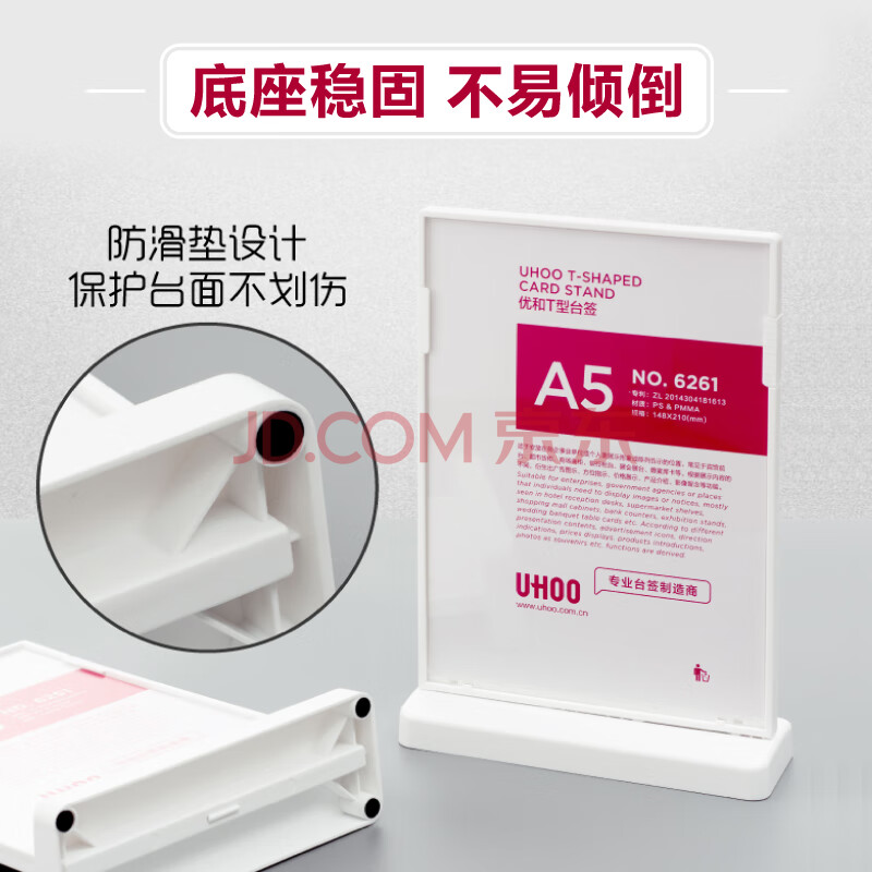 商品相册:优和(UHOO)桌牌 T型亚克力台卡台签架白色透明1个装210mm*297mm A4竖款展示牌会议卡6260第