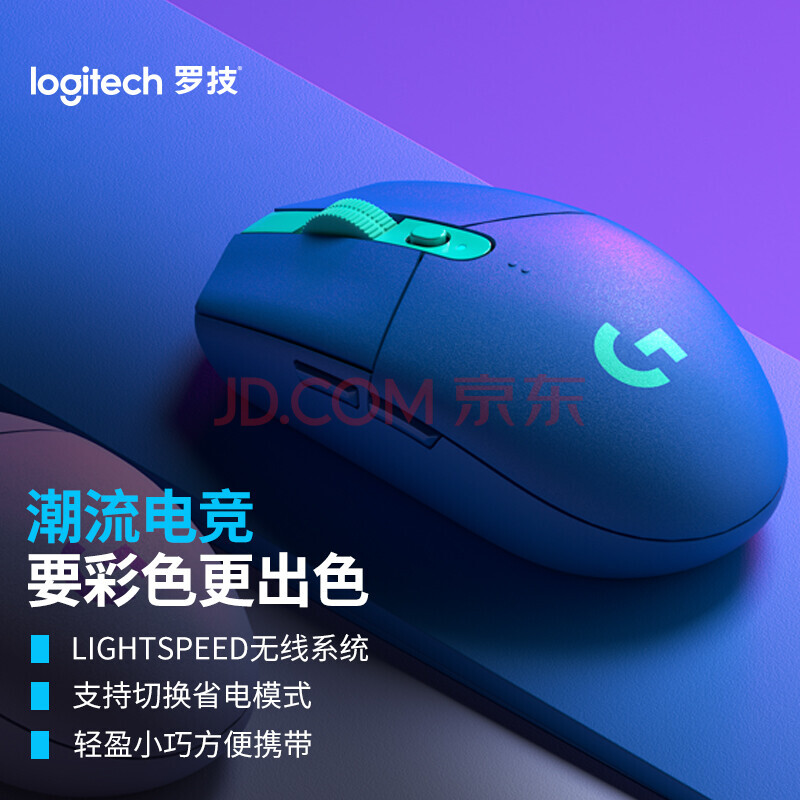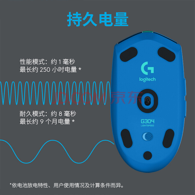 商品相册:罗技(G)G304 LIGHTSPEED 无线游戏鼠标(蓝色) 轻质便携 绝地求生FPS鼠标英雄联盟LOL吃鸡 生日礼物第