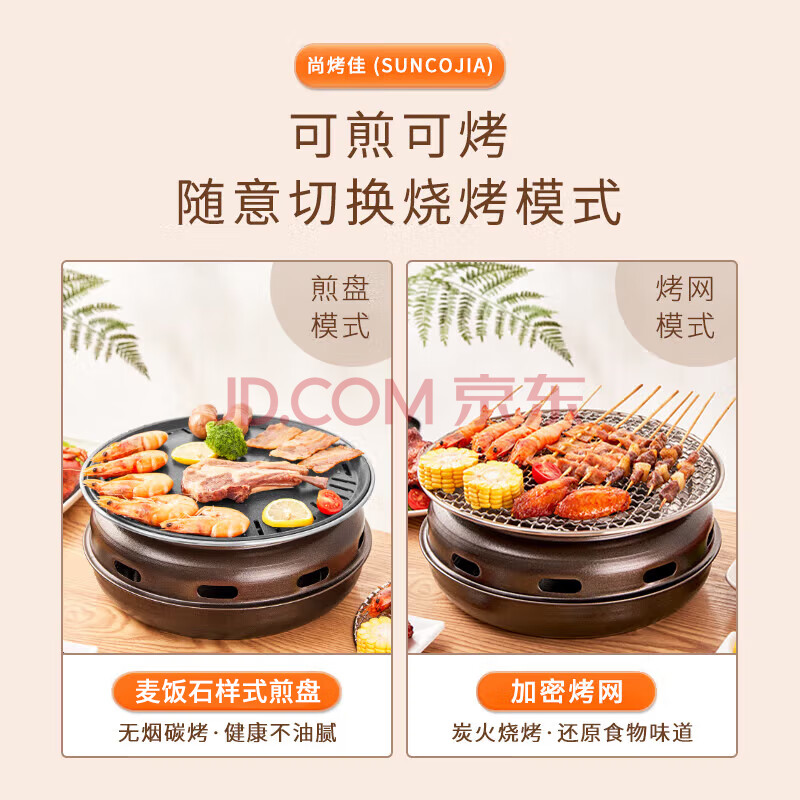 商品相册:尚烤佳(Suncojia)户外烧烤炉 木炭烧烤架 围炉煮茶炉 韩式无烟煎烤炉 木碳烤肉炉第