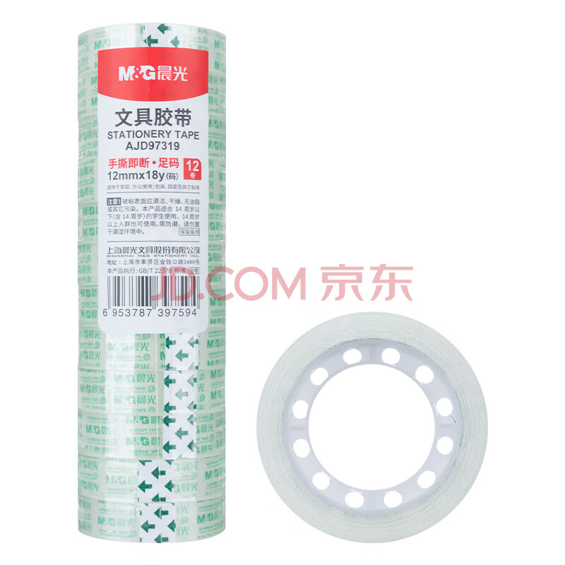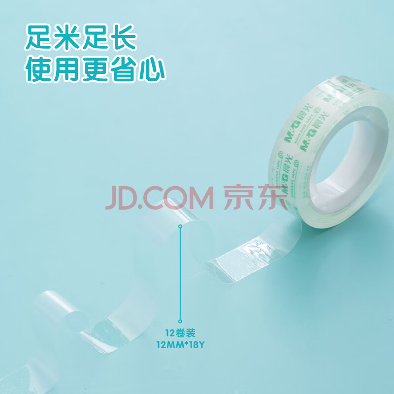 商品相册:晨光(M&G)文具透明胶带 高透易撕小胶带 开学必备用品学生手工胶布12mm*18y(16.5米/卷) 12卷装AJD97319第