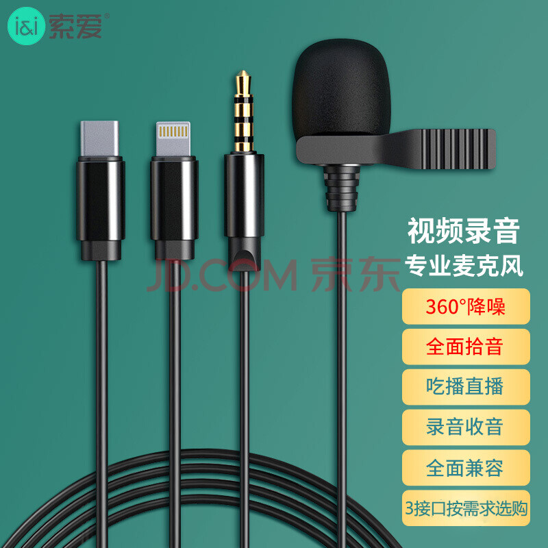 商品相册:索爱(soaiy) WS10B 领夹有线麦克风话筒手机直播收音麦录音vlog电脑话筒网课短视频设备采访 Type-c第