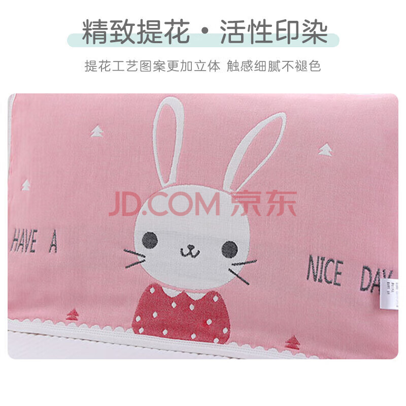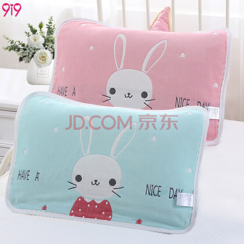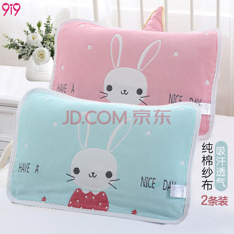 商品相册:9i9宝宝枕巾纯棉婴儿童纱布2条装四季透气吸汗吸湿柔软可爱A142兔子第
