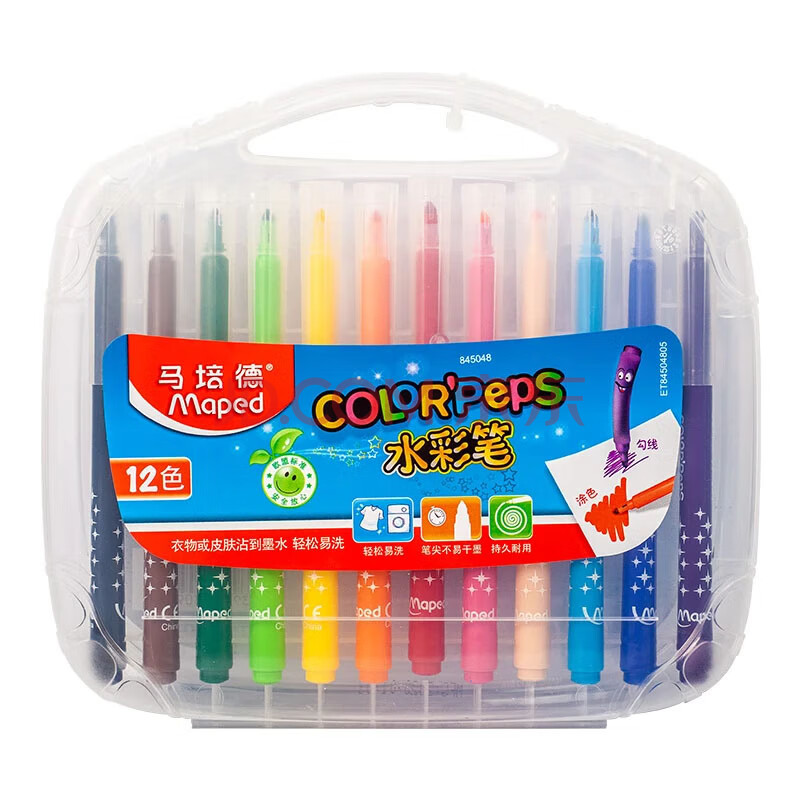 商品相册:马培德(Maped)可水洗水彩笔 幼儿学生绘画彩色笔 初学美术彩绘涂鸦画笔 845048CH【12色/塑盒装】儿童美育礼物第