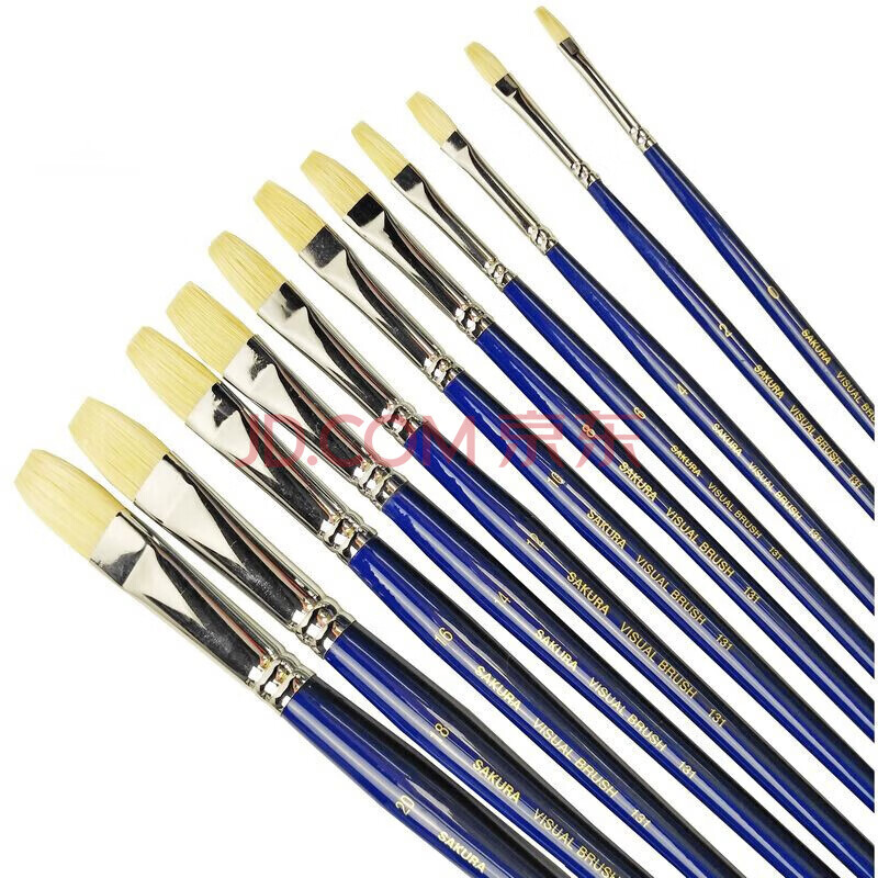 商品相册:【全网低价】樱花(SAKURA)猪鬃画笔 水粉油画笔丙烯长杆美术颜料刷初学者水彩笔榛形12号美术写生第