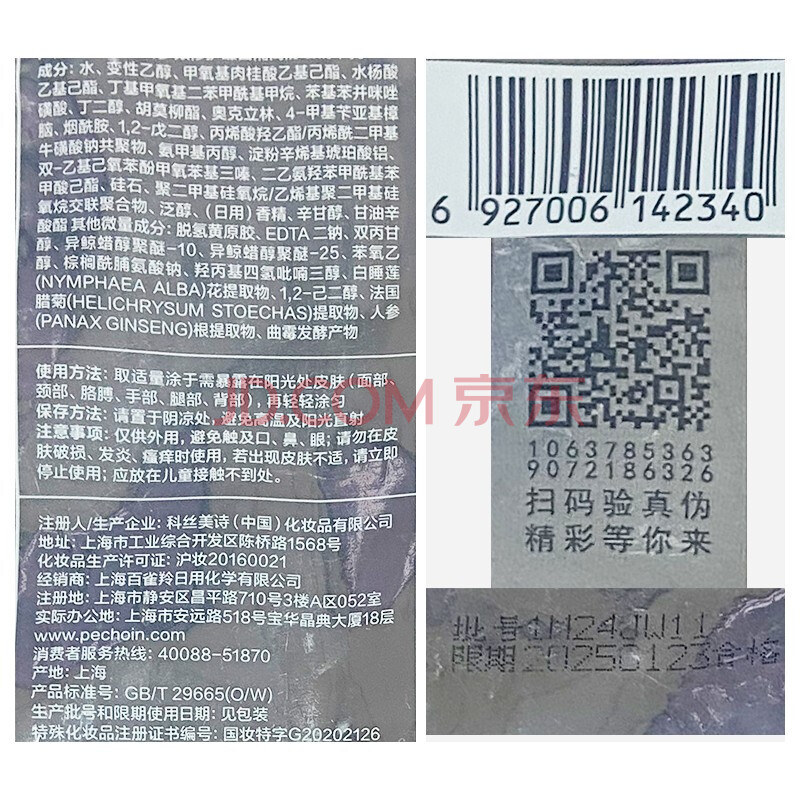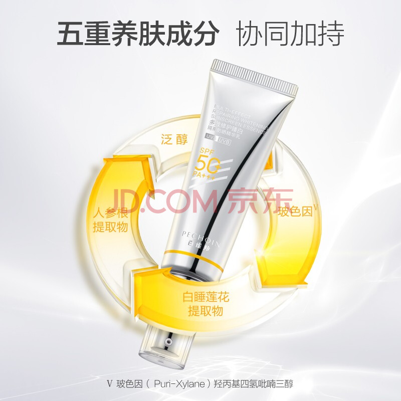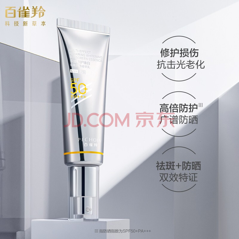 商品相册:百雀羚(PECHOIN) 防晒乳 多效修护臻白隔离防晒霜SPF50+PA+++15ml 长效保湿第