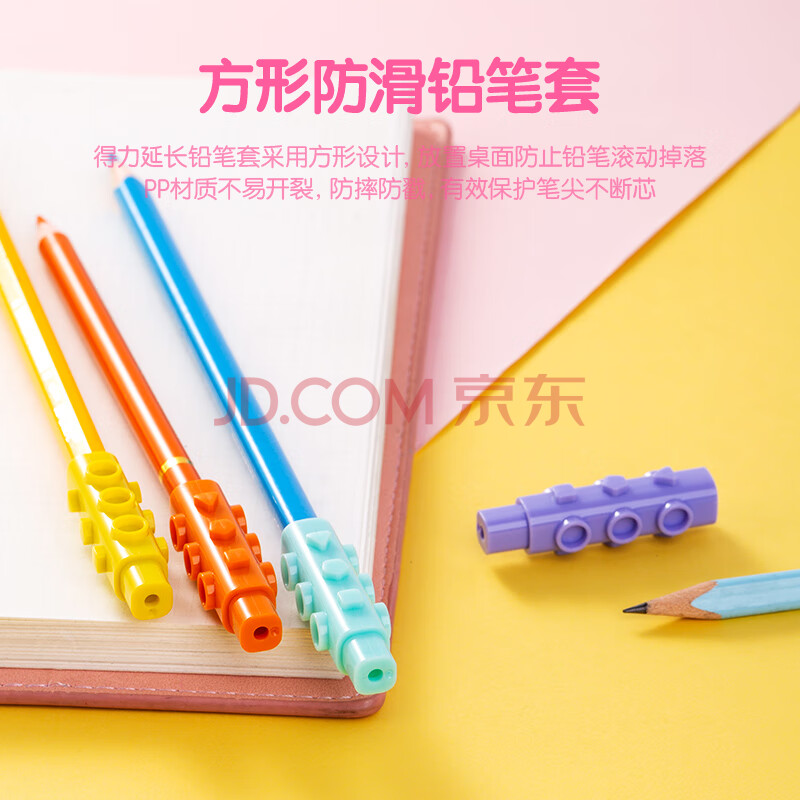 商品相册:得力(deli)4个铅笔套 开学文具小学生铅笔帽保护套 铅笔延长器 可拼接笔套 生日礼物第