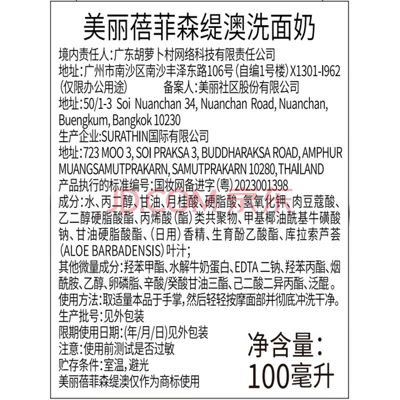 商品相册:美丽蓓菲森缇澳Q10牛奶洗面奶100ml*2支保湿温和泰国进口学生过节礼物送女友第