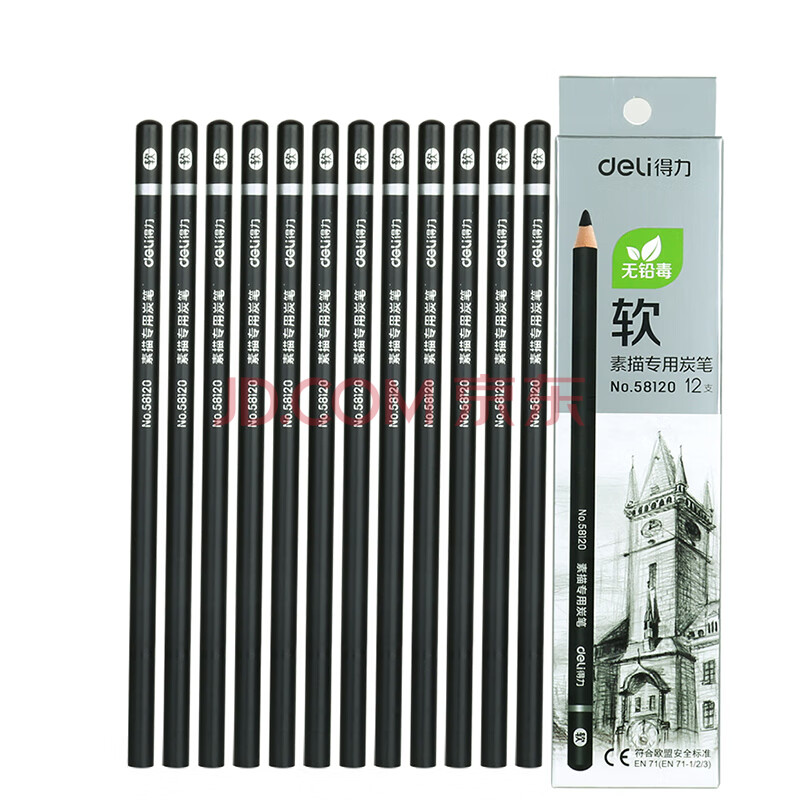 商品相册:得力(deli)58120美术素描炭笔石墨铅笔软款12支盒装专业绘画手绘素描彩绘软款画画第