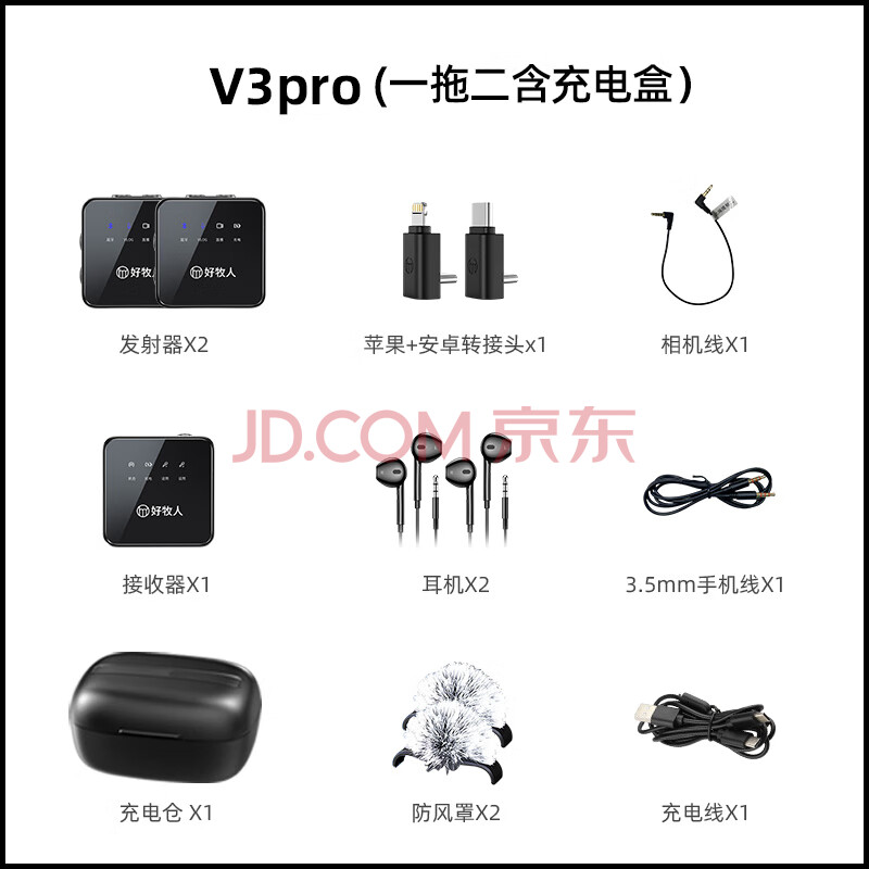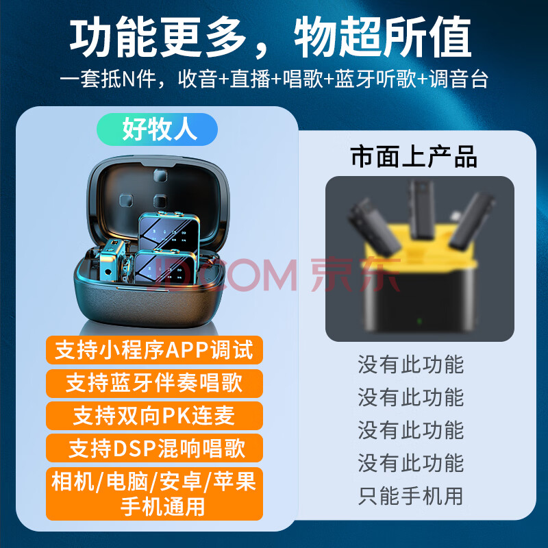 商品相册:好牧人无线领夹麦克风直播收音器手机专用录音设备声卡降噪抖音主播K歌拍视频小蜜蜂电脑相机话筒一拖二第