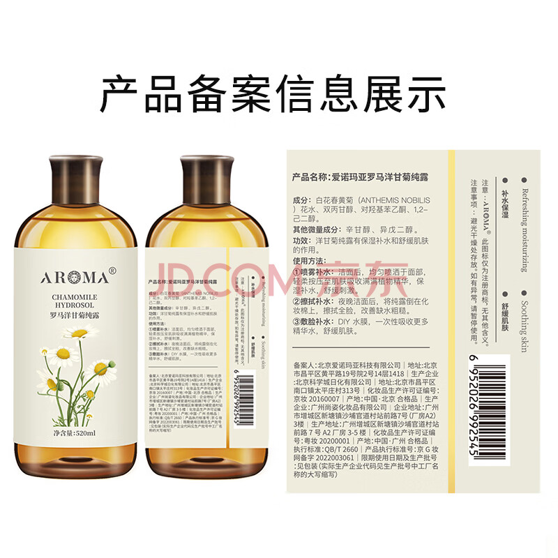 商品相册:爱诺玛亚(AROMA)洋甘菊纯露520ml爽肤水湿敷喷雾补水保湿敏感肌护肤礼物第