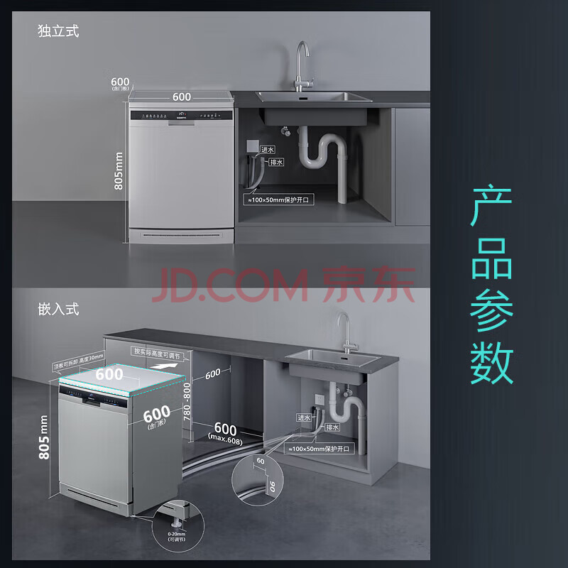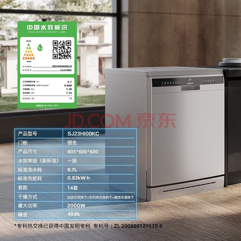商品相册:西门子(SIEMENS)150L+独嵌两用全能舱洗碗机 一级水效 精准涡流洗 动态环流烘干 96h存储除菌SJ23HI00KC【专】第