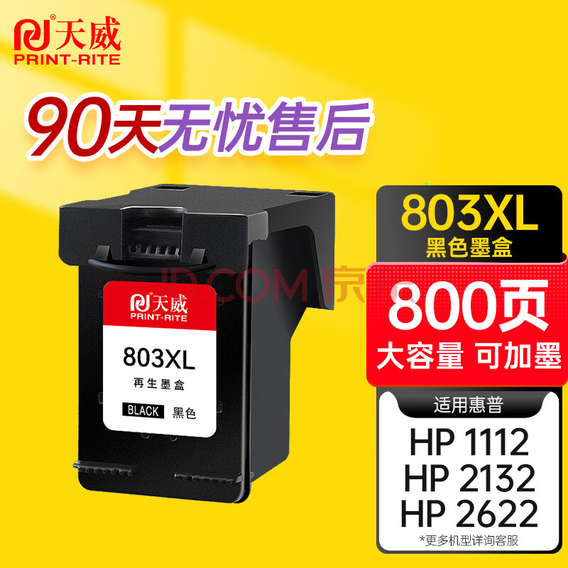 商品相册:天威 803墨盒 黑色XL大容量 适用惠普HP 2621 2622 2132 1111 1112 2130 2131打印机 高清显墨量升级版第