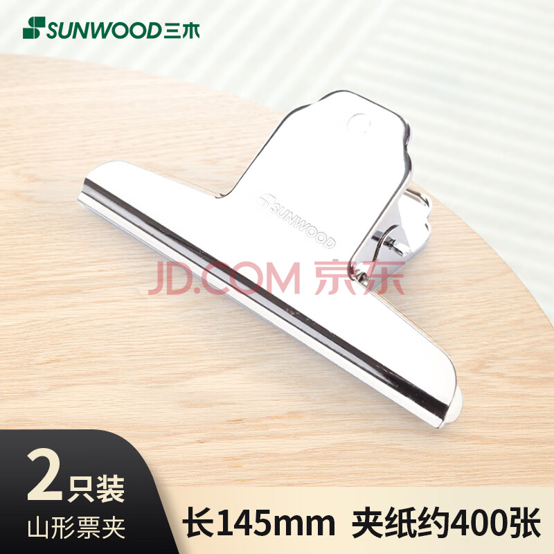 商品相册:三木(SUNWOOD)145mm山型铁票夹/金属长尾夹/票据夹 2只/袋 2067 第