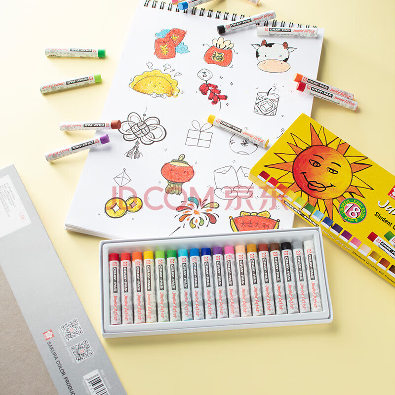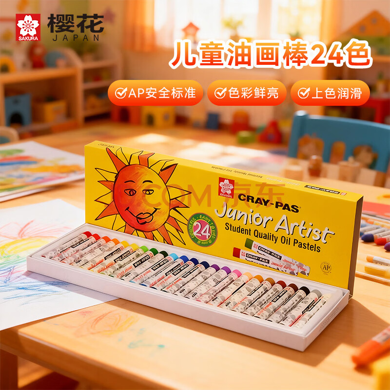 商品相册:樱花(SAKURA)24色油画棒套装儿童安全蜡笔美术彩绘绘画画笔软性油性粉棒油彩棒出游新年礼物小太阳款第