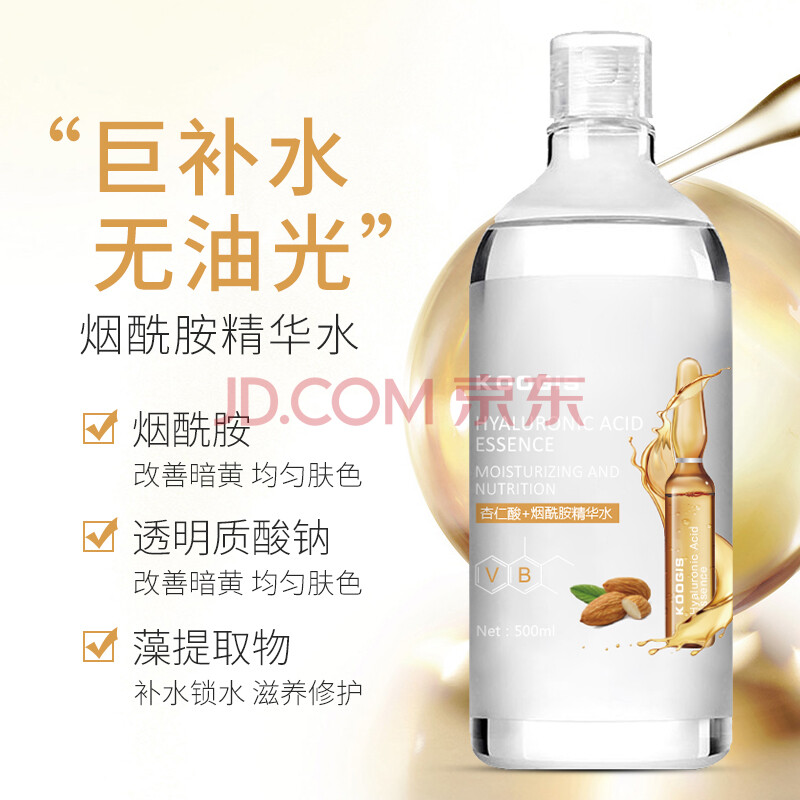 商品相册:KOOGIS大瓶玻尿酸精华原液全分子量烟酰胺杏仁酸爽肤湿敷水补水保湿提亮第