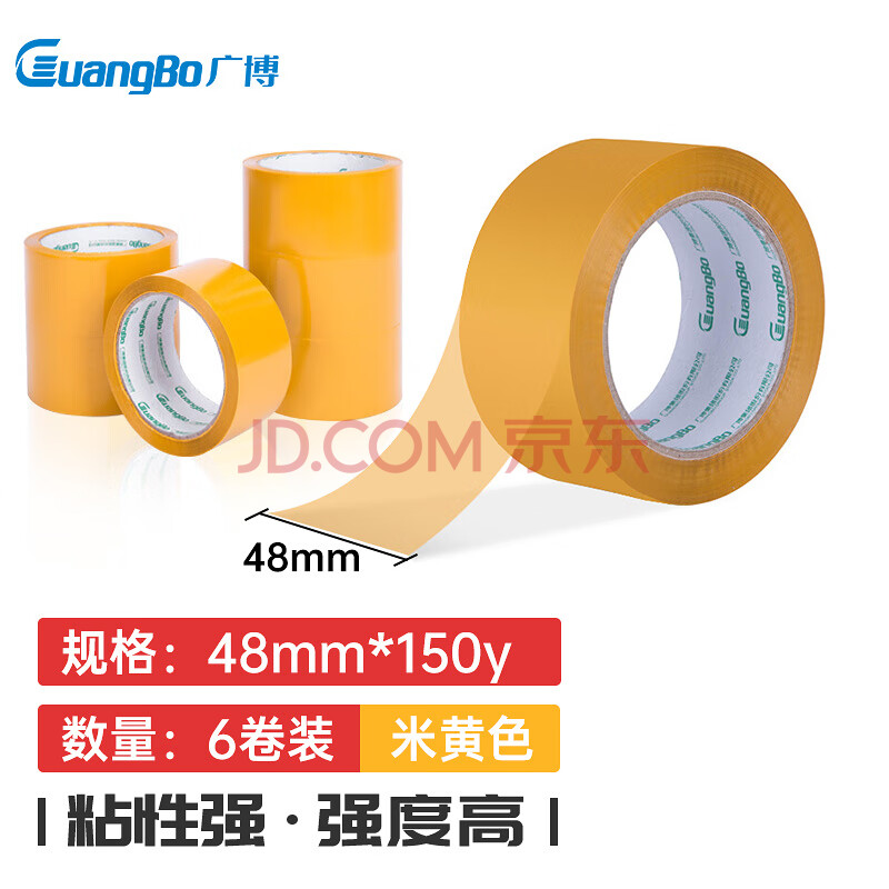 商品相册:广博防风(GuangBo)6卷装48mm*150y*50μm 137.1米/卷米黄色封箱胶带胶布办公用品FX-74第