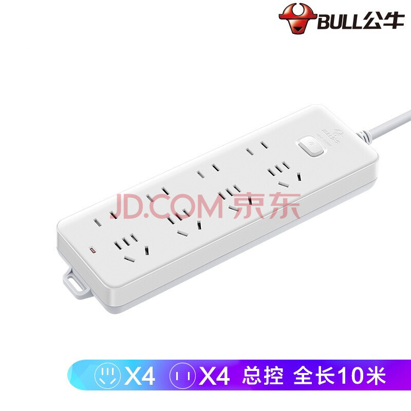 商品相册:公牛 GN-403 新国标插座/插排/接线板/插线板 8孔插排 8位总控 全长10米第