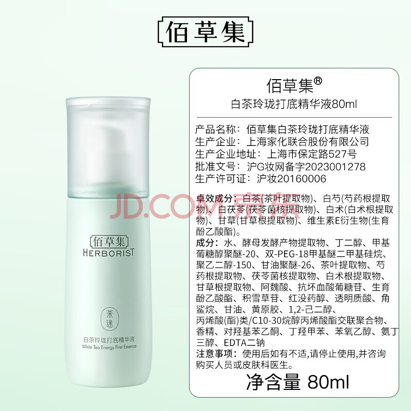 商品相册:佰草集白茶玲珑肌底精华液80ml补水保湿提亮易吸收护肤品生日礼物第