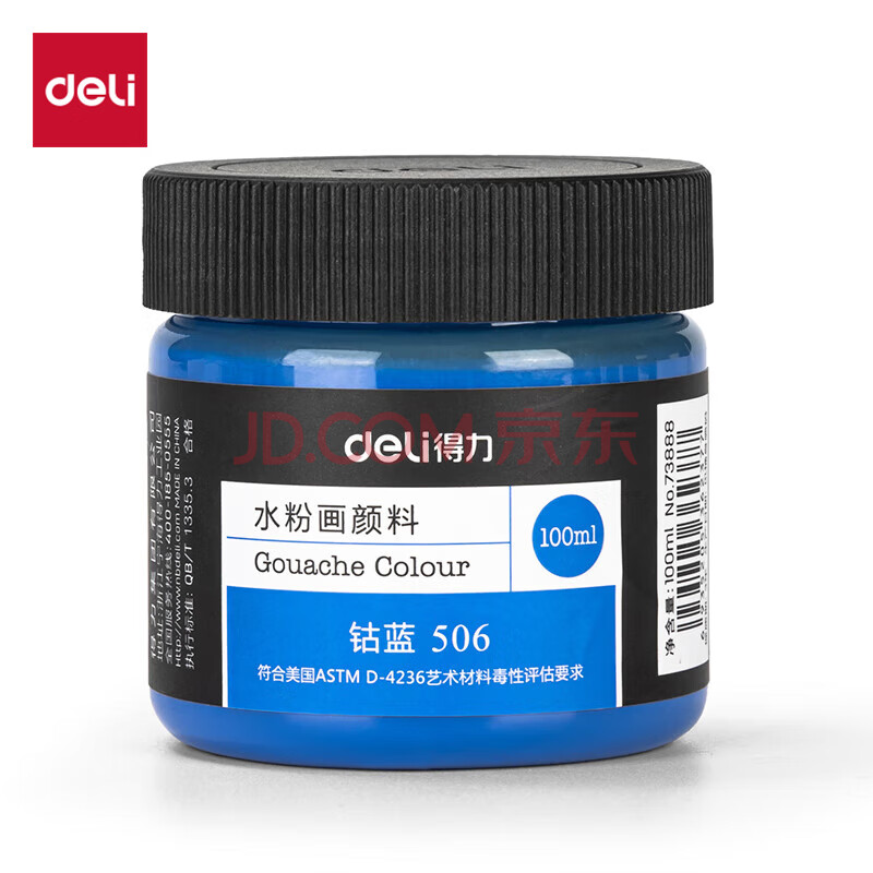 商品相册:得力(deli)水粉颜料钴蓝100ml大容量罐装绘画彩绘水粉画成人学生儿童艺考初学者73888可水洗手搓颜料第