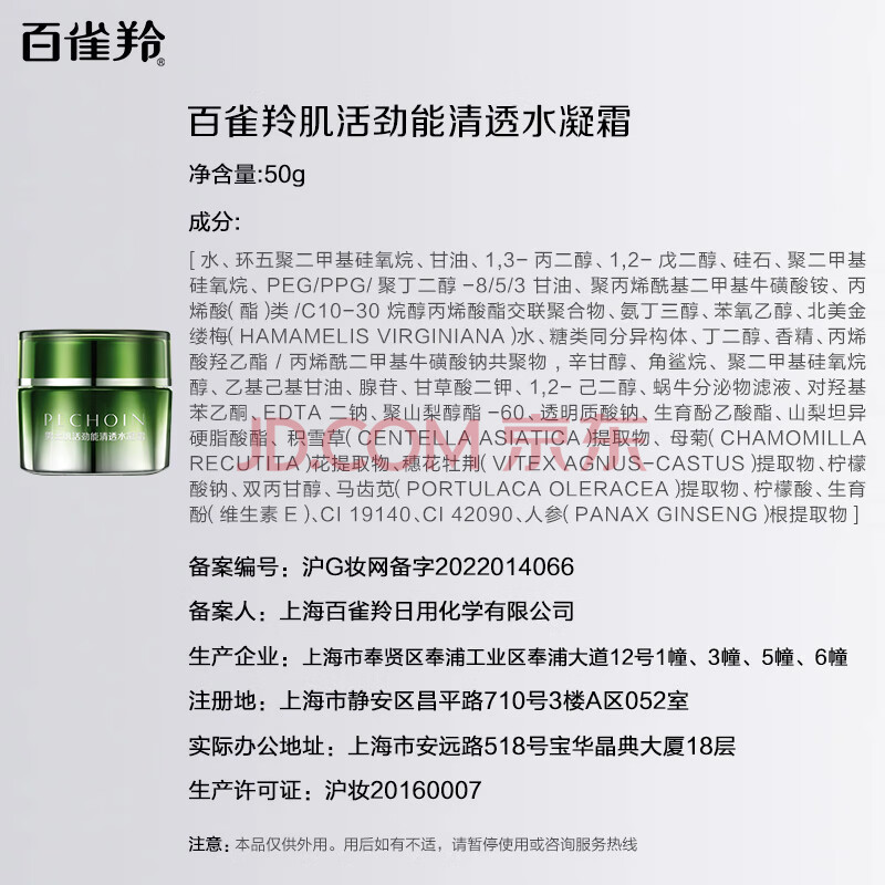 商品相册:百雀羚男士面霜肌活劲能清透水凝霜50g乳液面霜 保湿送男友送男友第