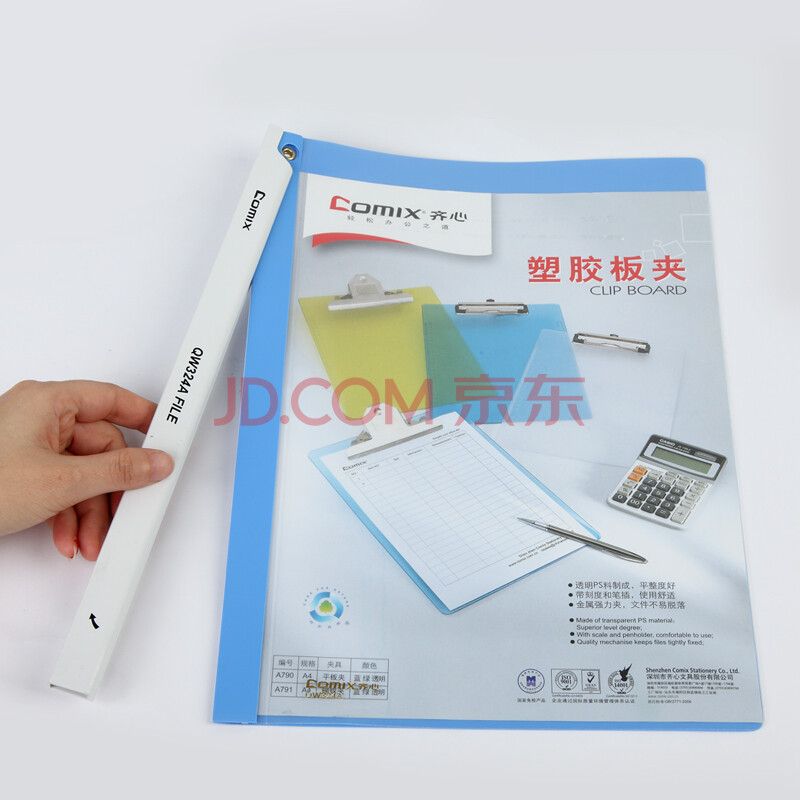 商品相册:齐心(Comix)A4抽杆夹/文件夹/报告夹/拉杆夹 单个装 办公用品 蓝 QW324A第