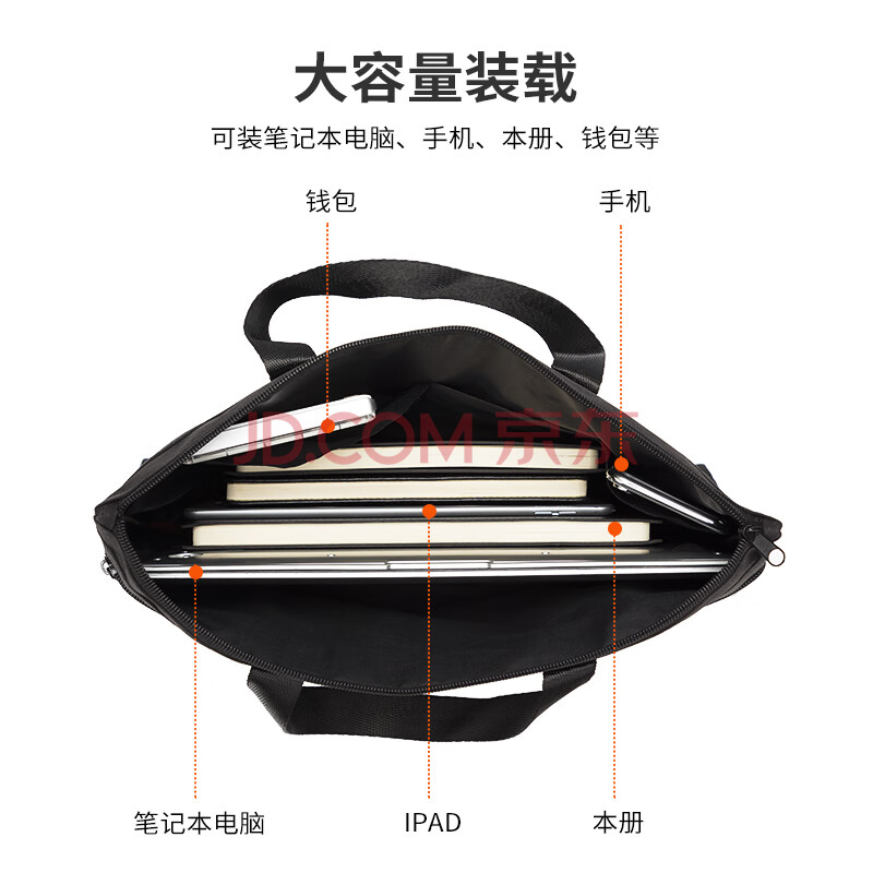 商品相册:得力(deli)双层手提袋事务包文件袋/文件包 底部加宽大容量电脑会议包 男女便携资料公文包 P05845黑色第