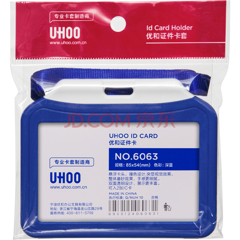 商品相册:优和(UHOO)双面透明证件卡套 深蓝 横式 1个卡套+1根挂绳 公交卡套工作牌胸牌员工证件套 6113第