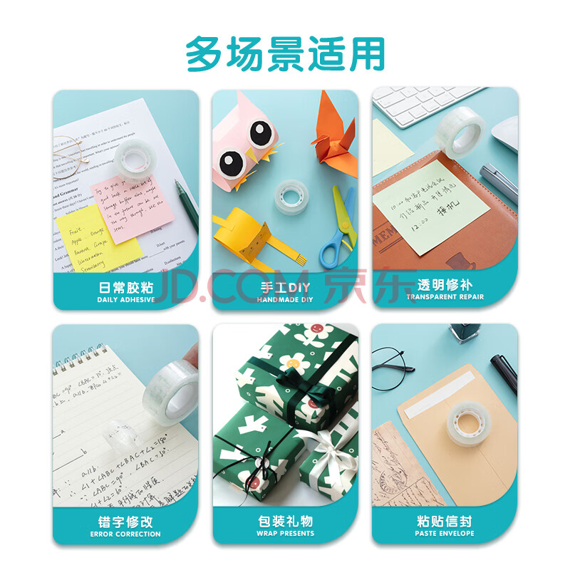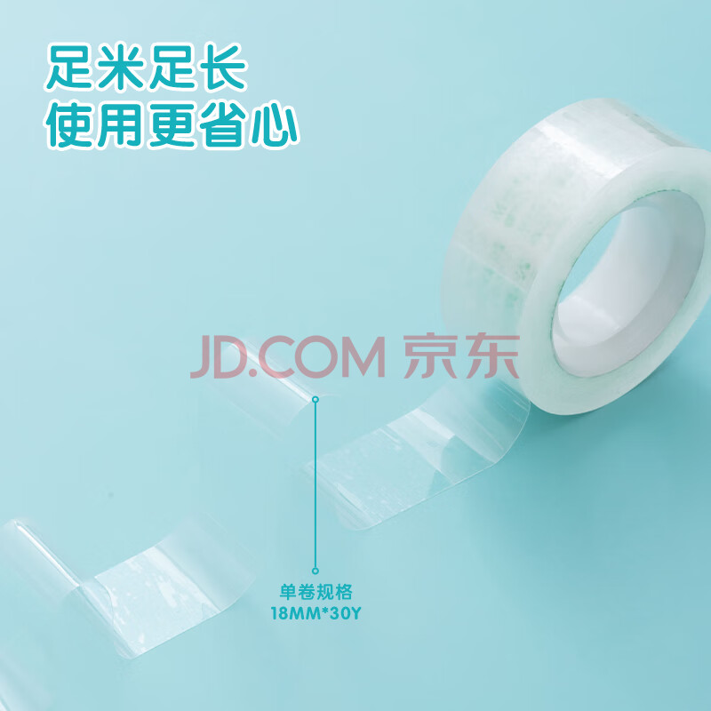 商品相册:晨光(M&G)文具透明胶带 高透易撕小胶带 开学必备用品小学生手工胶布 18mm*30y(27.42米/卷) 单卷装AJDN7664第
