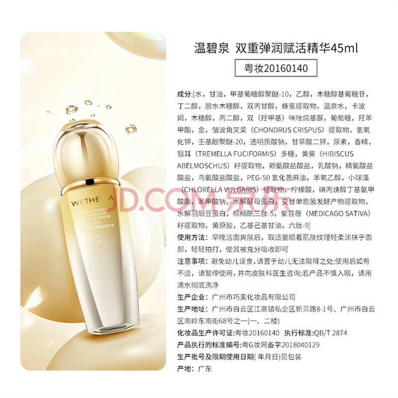 商品相册:温碧泉面部精华液紧致双重弹润精华45ml 护肤化妆品男女适用 保湿滋润38第