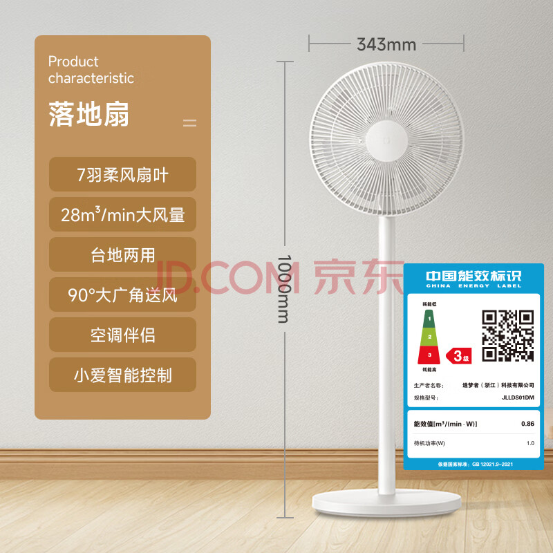商品相册:米家 小米电风扇 落地扇家用7羽叶轻音大广角大风量远风距台地两用远程智能控制 AI语音控制第1张/共5