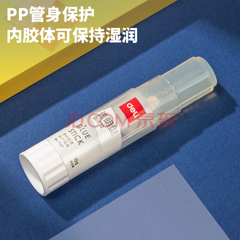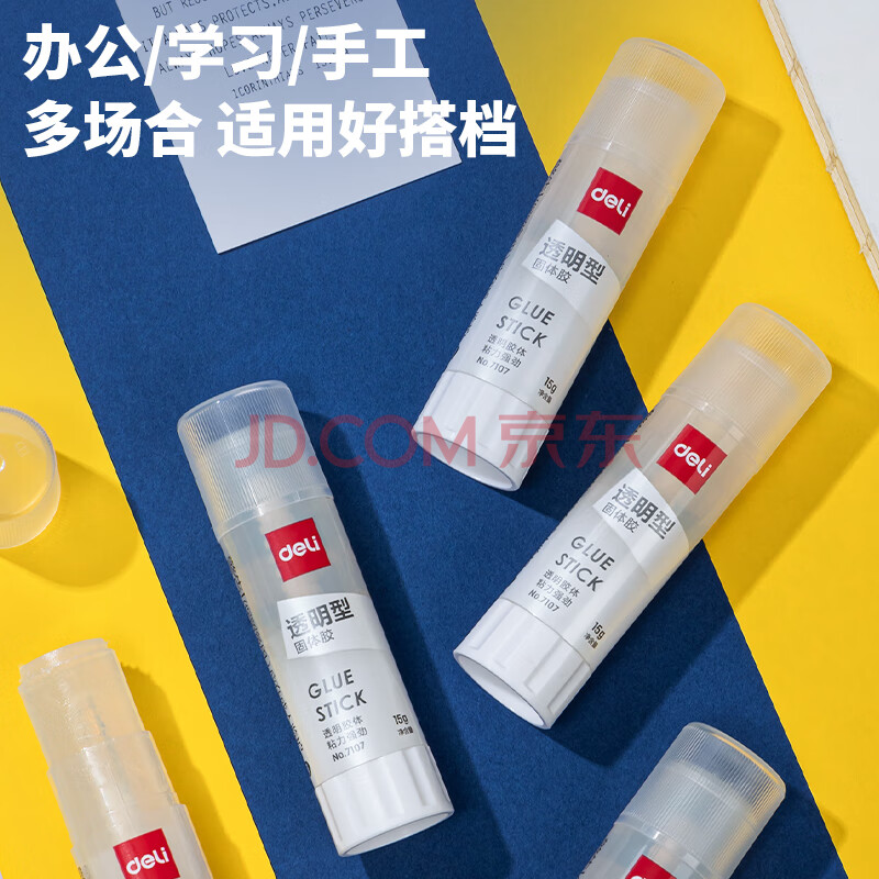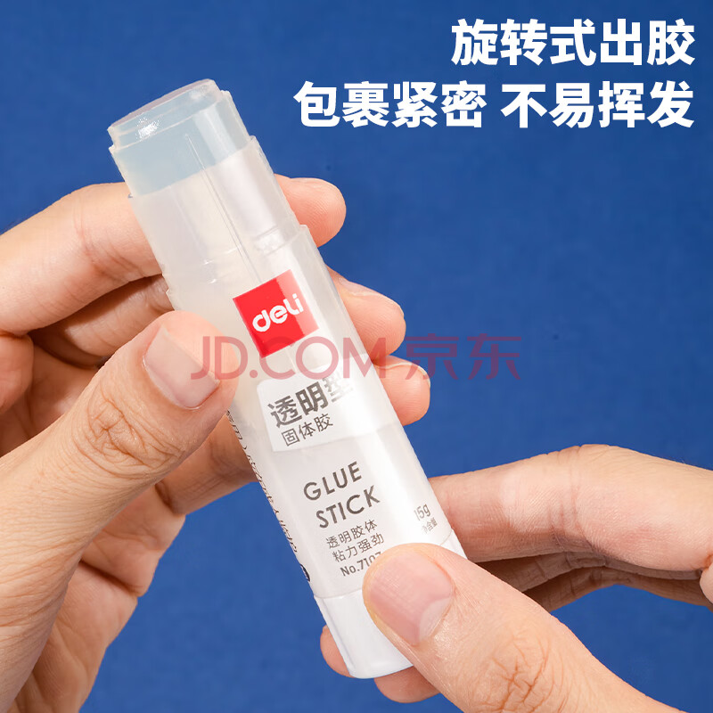 商品相册:得力(deli)15gACR固体胶 高粘果冻色透明胶棒 无甲醛强力胶水 学生文具 24支 办公用品 7107第