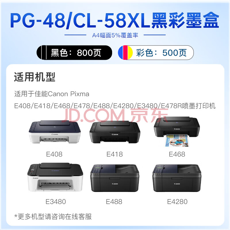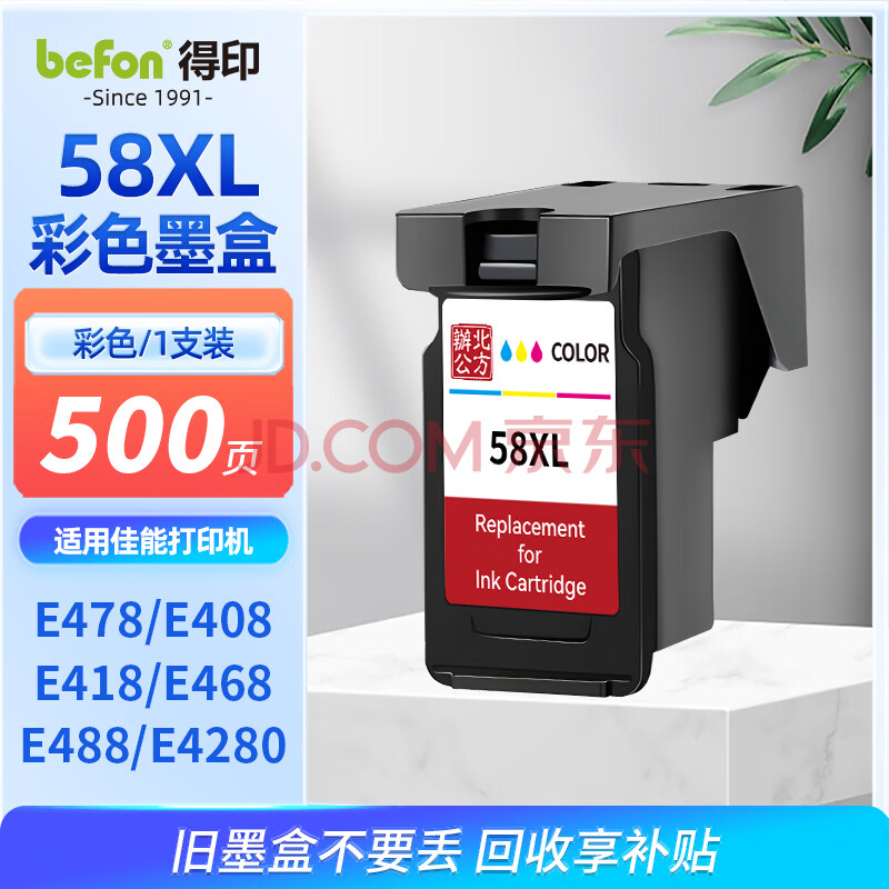 商品相册:得印CL-58XL墨盒彩色佳能E478墨盒适用佳能Canon E478 E408 E418 E468 E488 E4280 E3480喷墨打印机墨盒墨水第