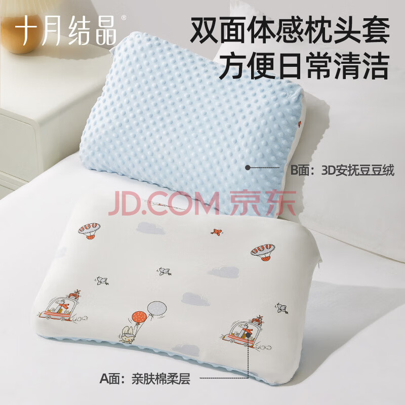 商品相册:十月结晶儿童枕套棉柔豆豆绒柔软舒压双面可用(不含枕芯) 蓝白34*51cm第