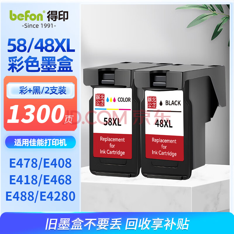 商品相册:得印PG-48XL/CL-58XL墨盒黑彩套装适用佳能E478墨盒E408 E418 E468 E488 E4280 E3480喷墨打印机墨盒墨水第