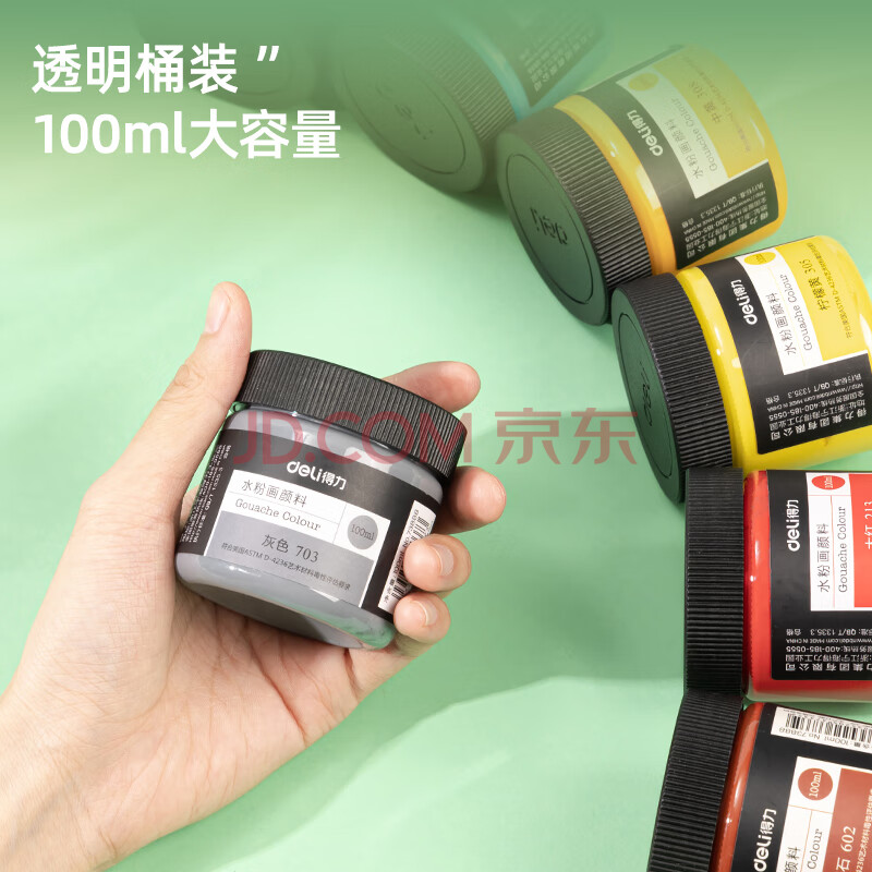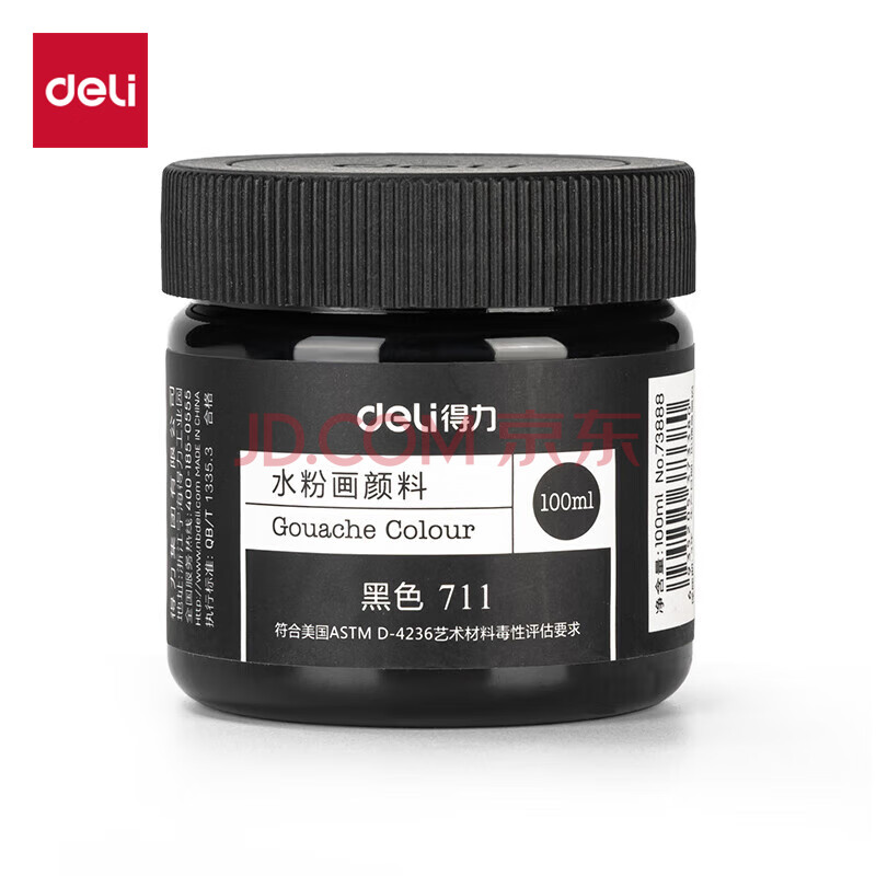 商品相册:得力(deli)水粉颜料黑色100ml大容量罐装画画美术专用水粉画绘画彩绘艺考初学者73888可水洗手搓颜料第