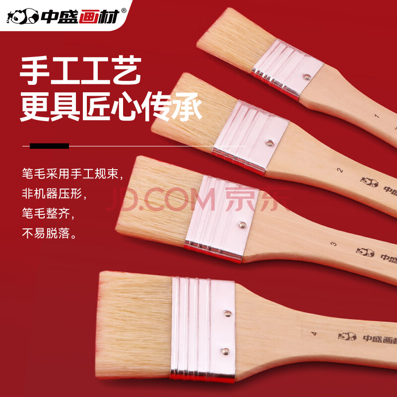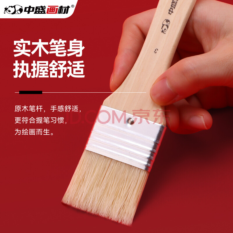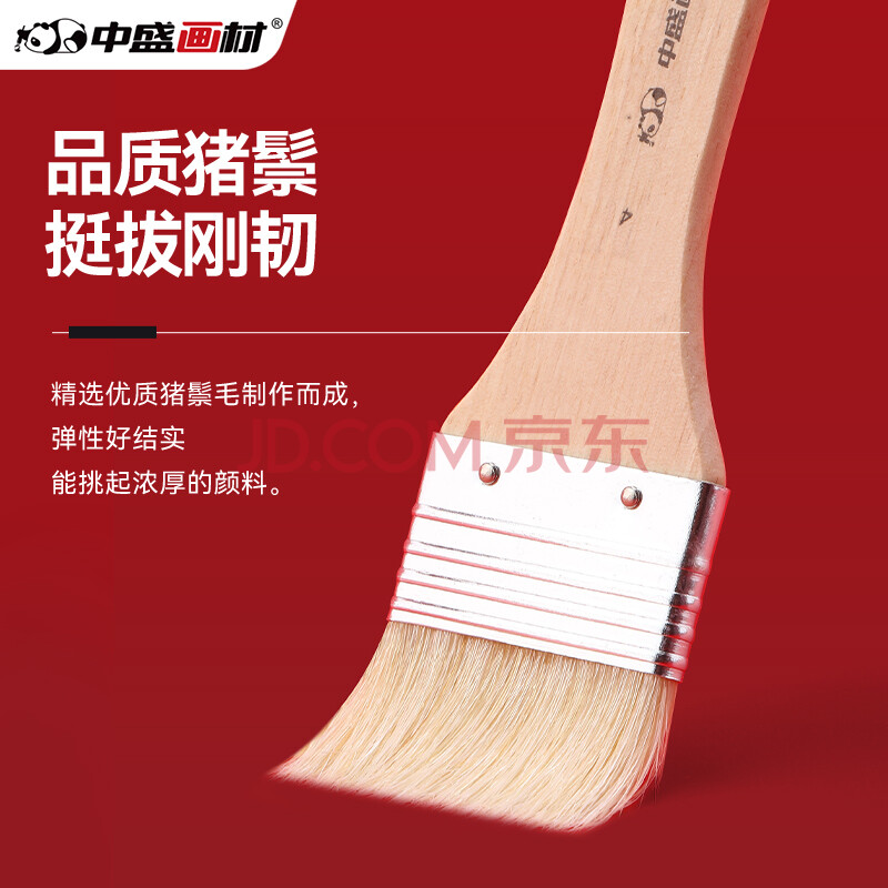商品相册:中盛画材 1#猪鬃板刷画刷短杆油画板刷水粉丙烯油画刷子美术手绘墙绘底刷笔刷水粉丙烯颜料用底纹单支刷墙刷美术写生第