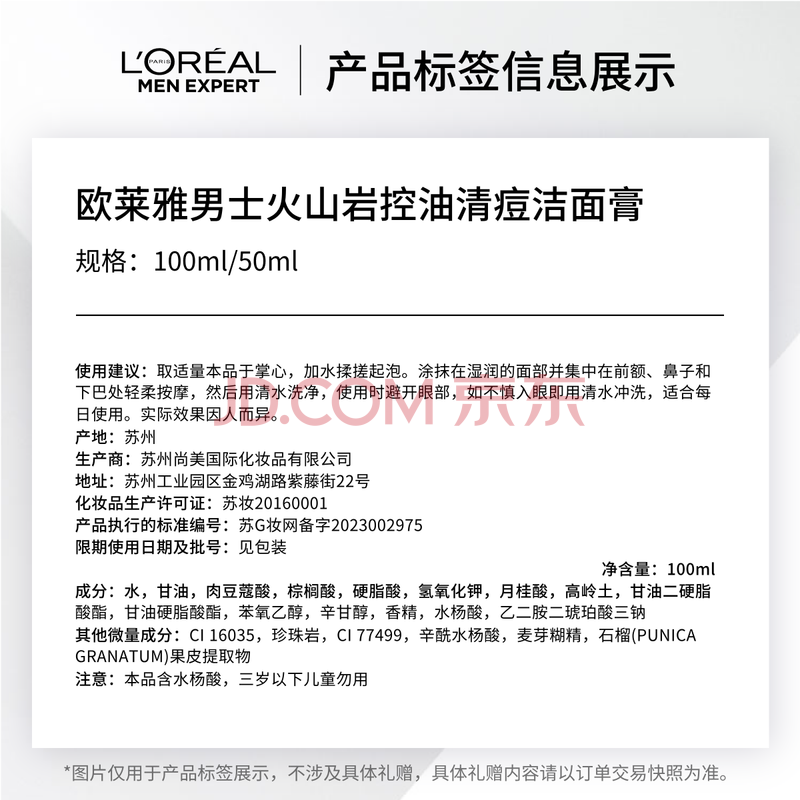 商品相册:欧莱雅男士专用火山岩控油洗面奶洁面乳100ml祛痘净毛孔护肤品第