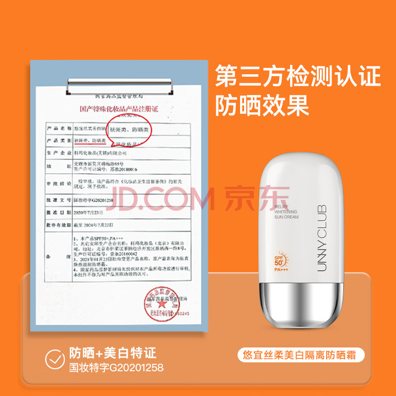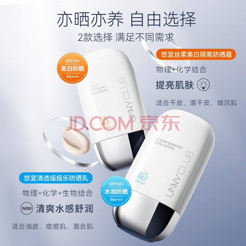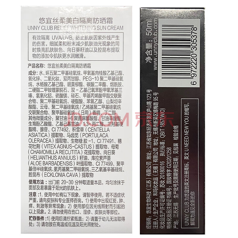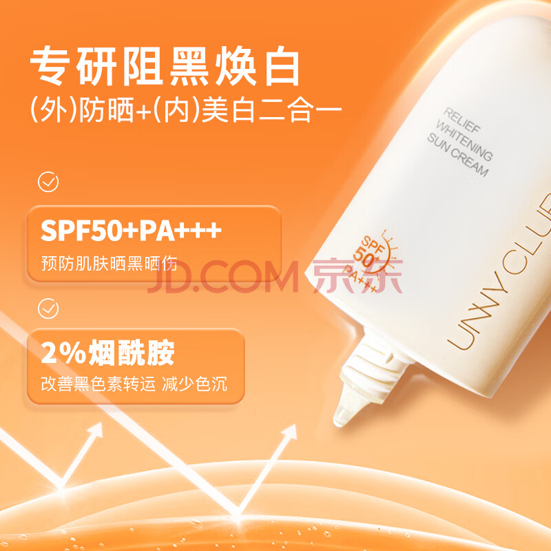 商品相册:悠宜(unny club)美白隔离防晒乳霜SPF50+PA+++50ml 素颜化妆品护肤男女士日常通勤第1张/共8