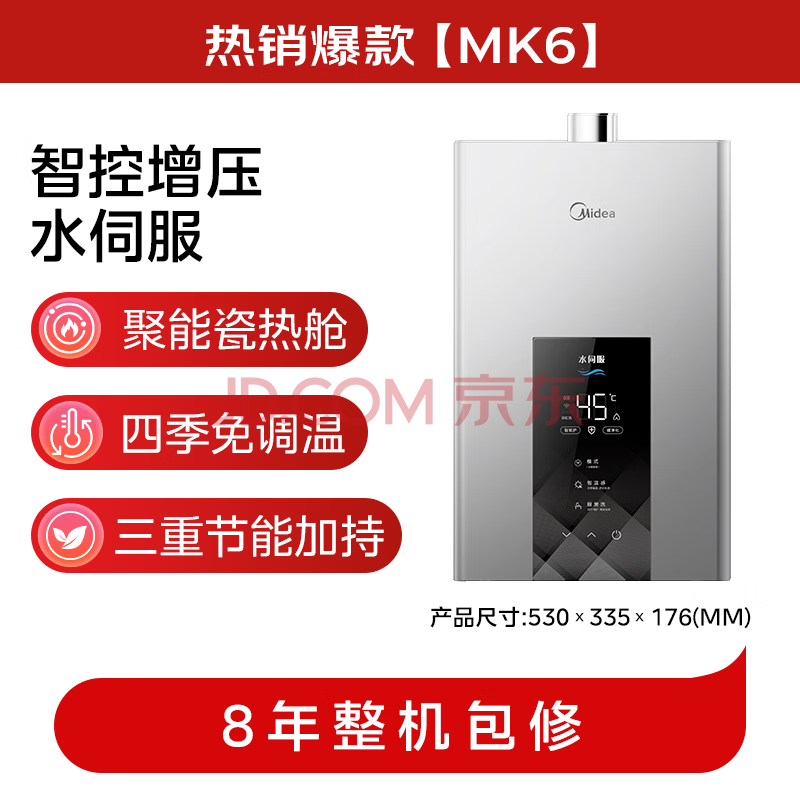 商品相册:美的【水伺服MK6 16L】行业爆款 智控增压水伺服 恒温节能 一厨两卫 低水压启动 燃气热水器 上门安装 第