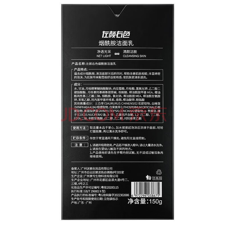 商品相册:左颜右色【郑恺代言】男士烟酰胺洗面奶提亮肤色保湿焕亮洁面乳护肤品150g第