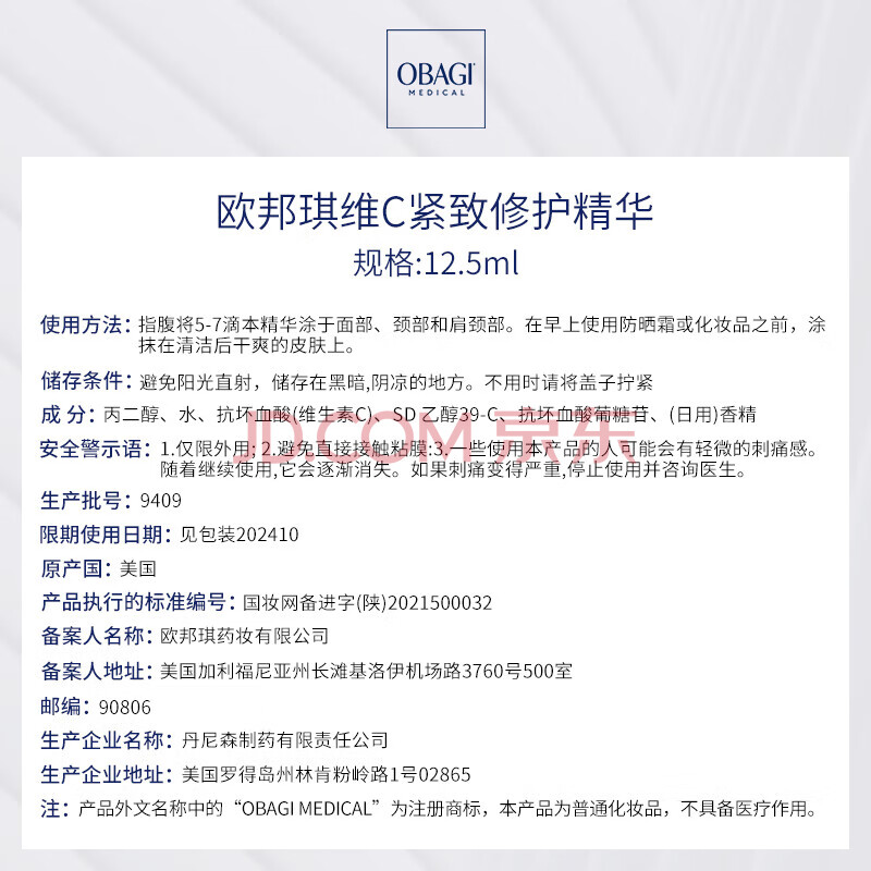 商品相册:Obagi欧邦琪第二代VC紧致修护精华蓝瓶左式VC 15% 12.5ml 生日礼物第