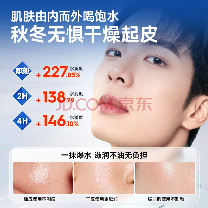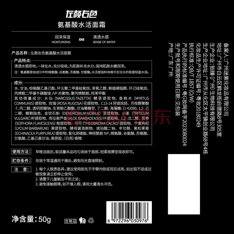 商品相册:左颜右色氨基酸水活面霜男士护肤品控油修护保湿乳男50g擦脸霜滋润润肤霜第
