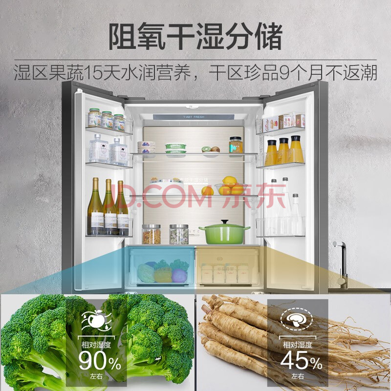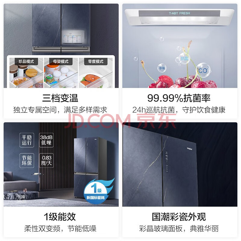 商品相册:海尔(Haier)501升风冷无霜十字对开门超薄冰箱干湿分储钢化玻璃面板节能BCD-501WLHTDD5BYU1售完即止不退不换第
