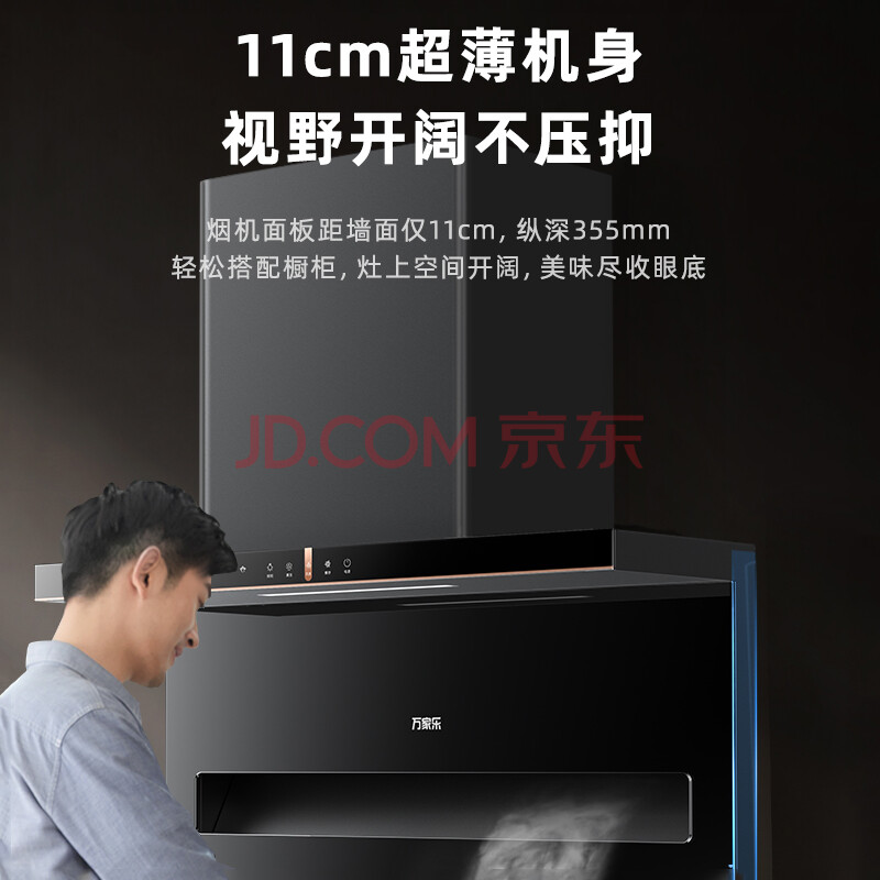 商品相册:万家乐油烟机 22立方爆炒大吸力 瞬吸油烟 全面屏玻璃易清洁 7字结构低空速吸油烟机CXW-360-PW3第