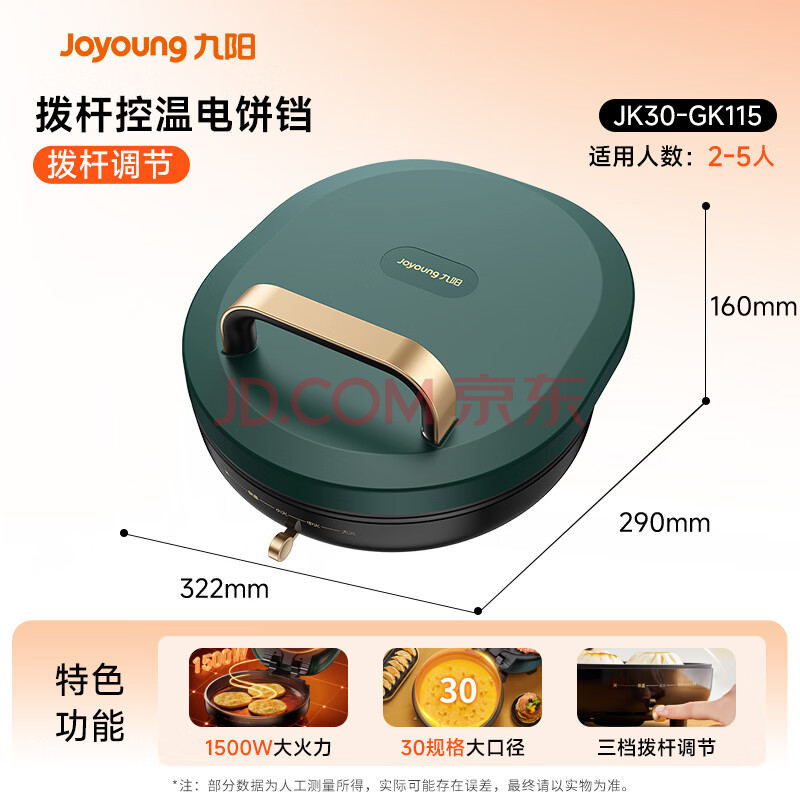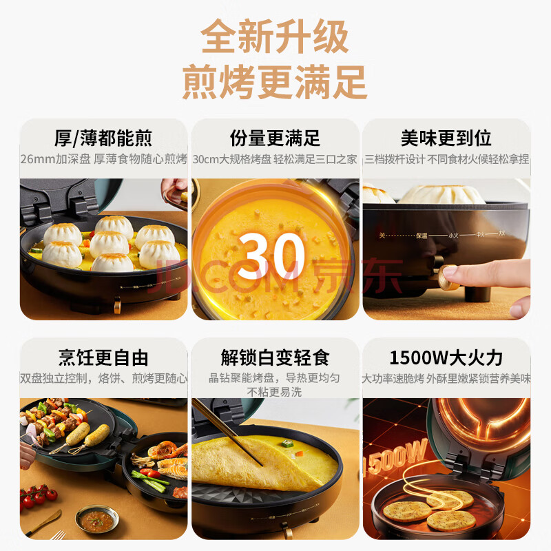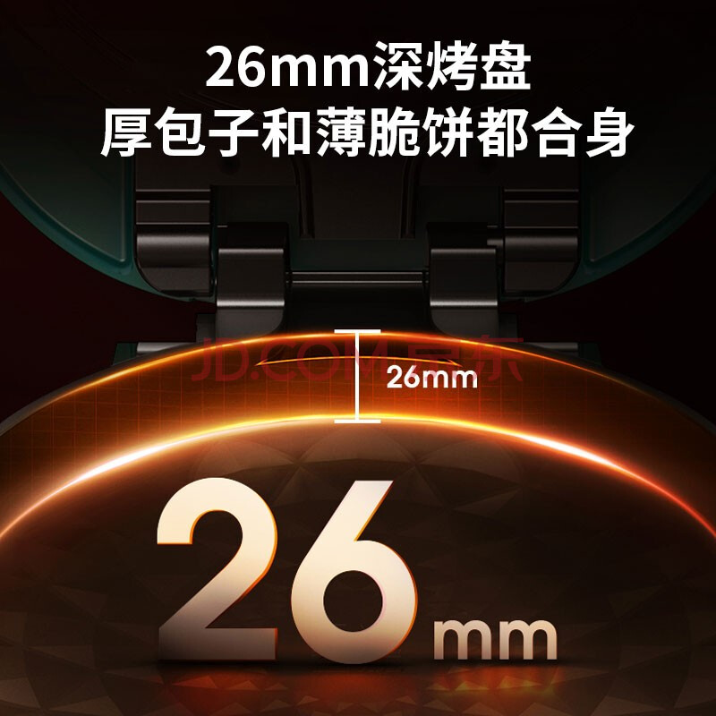 商品相册:九阳(Joyoung)电饼铛三明治机早餐机家用大火力双面加热煎烤机 26mm加深烤盘网红复古绿GK115第