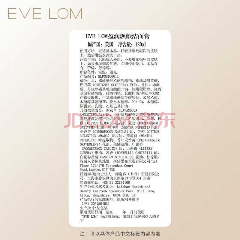 商品相册:EVE LOM伊芙珑盈润焕颜洁面膏120ml 清洁净透舒缓不紧绷 生日礼物送女生第1张/共4
