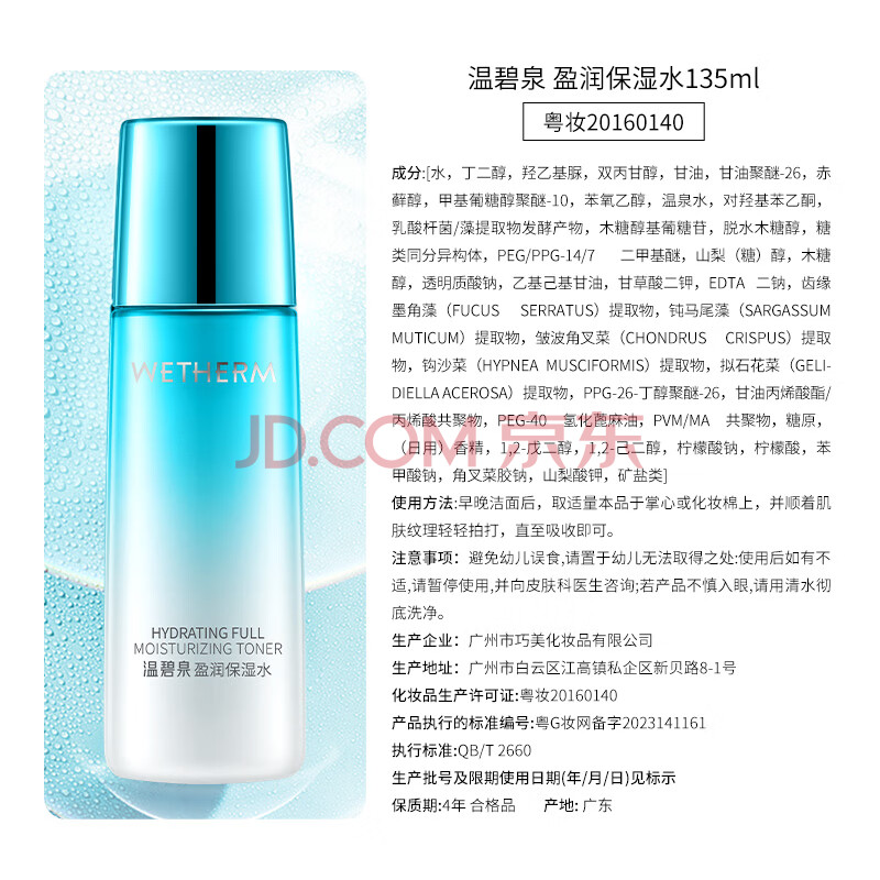 商品相册:温碧泉爽肤水盈润保湿水135ml 护肤化妆品男女学生适用 补水保湿湿敷第