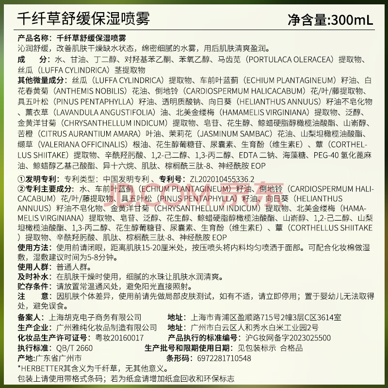 商品相册:千纤草补水喷雾保湿爽肤水舒缓化妆柔肤护肤水丝瓜男女300ml*2第