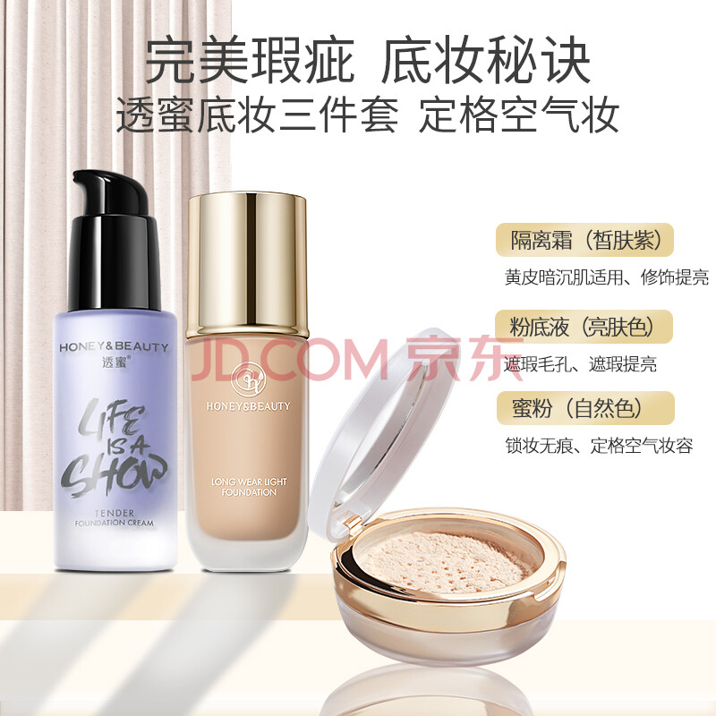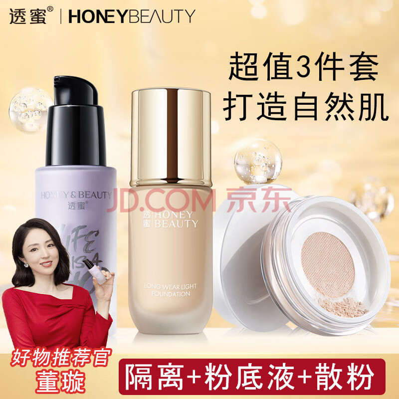 商品相册:透蜜隔离霜彩妆套装提亮肤色持妆粉底液遮瑕定妆蜜粉生日礼物第